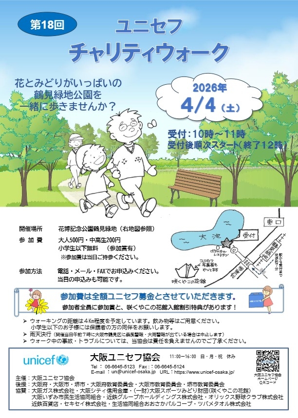 4月4日(土)「第18回 ユニセフ・チャリティウォーク」@花博記念公園鶴見緑地