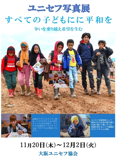 あべのハルカス17階ロビーにて11月19日(水)~ 12月2日(火)まで写真展「すべての子どもに平和を」を開催します。