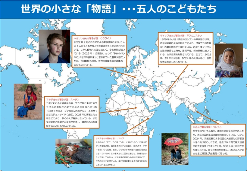 この写真展では、5人の子どもたちの、小さな「物語」を通じて、世界のことを考えてもらいたいと思います。